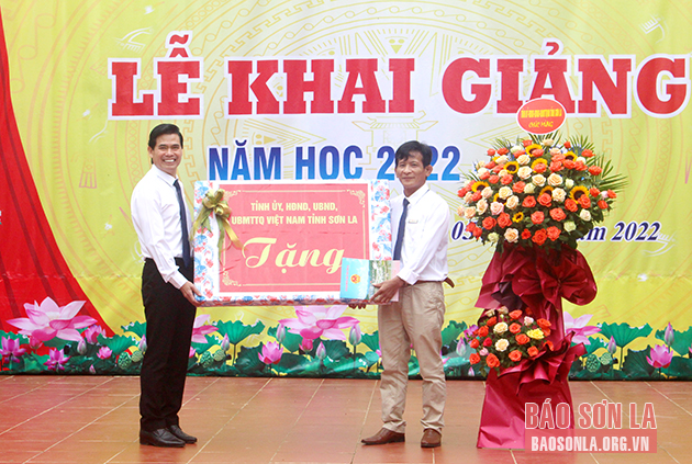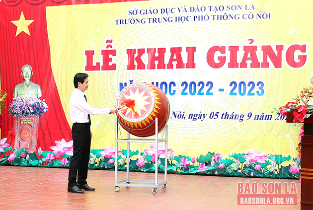 Đánh trống khai giảng năm học 2022-2023, đồng chí Lò Minh Hùng, Phó Bí thư Thường trực Tỉnh ủy đã động viên cán bộ, giáo viên, học sinh nhà trường và đề nghị: Năm học mới, nhà trường cần tiếp tục đổi mới phương pháp dạy học, kiểm tra đánh giá; khai thác, sử dụng các thiết bị dạy và học hiệu quả, phù hợp; vận dụng linh hoạt các phương pháp, hình thức tổ chức dạy học. Đẩy mạnh chuyển đổi số, cải cách hành chính trong giáo dục; pháy huy năng lực, sức sáng tạo và huy động mạnh mẽ các nguồn lực xã hội hóa để phát triển toàn diện sự nghiệp giáo dục và đào tạo.