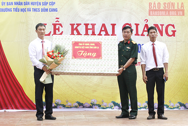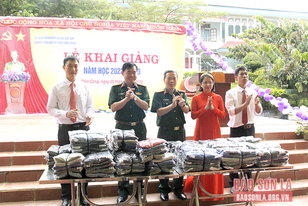 Hòa chung không khí ngày khai trường, 21 trường học, với tổng số gần 17.000 học sinh các cấp trên địa bàn huyện Sốp Cộp cũng hân hoan khai giảng năm học mới. Đồng chí Tô Quang Hanh, Ủy viên Ban Thường vụ Tỉnh ủy, Chỉ huy trưởng Bộ CHQS tỉnh đã đến dự Lễ khai giảng tại Trường tiểu học và THCS Dồm Cang.