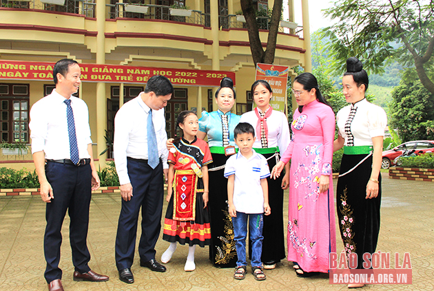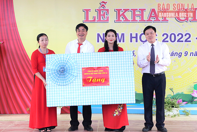 Tại Trường Tiểu học, THCS Chiềng La, xã Chiềng La, đồng chí Đinh Thị Bích Thảo, Ủy viên Ban Thường vụ tỉnh ủy, Trưởng Ban Tuyên giáo tỉnh ủy đã tới dự và đánh trống khai trường.