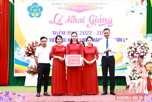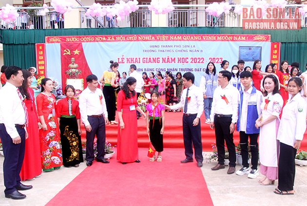 Cùng ngày, đồng chí Lưu Minh Quân, Ủy viên Ban Thường vụ Tỉnh ủy, Trưởng ban Dân vận Tỉnh ủy, dự Lễ khai giảng năm học mới và trao Bằng công nhận Trường đạt chuẩn Quốc gia mức độ I cho Trường tiểu học & THCS Chiềng Ngần B, Thành phố.