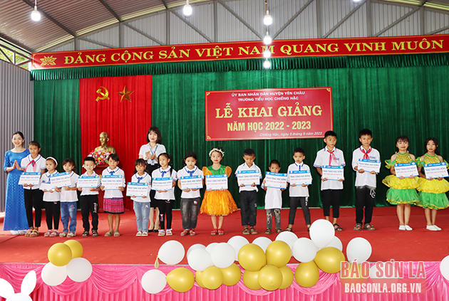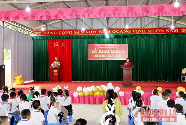 Hòa chung không khí ngày khai trường, 50 trường học với hơn 22.000 học sinh các cấp trên địa bàn huyện Yên Châu cũng hân hoan khai giảng năm học mới 2022-2023. Đồng chí Lường Thị Vân Anh, Ủy viên Ban Thường vụ Tỉnh ủy, Chủ nhiệm Ủy ban Kiểm tra Tỉnh ủy đã đến dự Lễ khai giảng tại Trường tiểu học Chiềng Hặc, huyện Yên Châu.