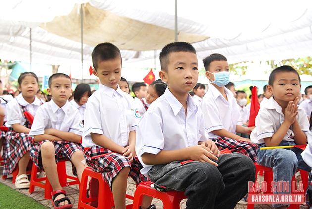 Lễ khai giảng ở Trường tiểu học & THCS Chiềng Ngần B, thành phố Sơn La.