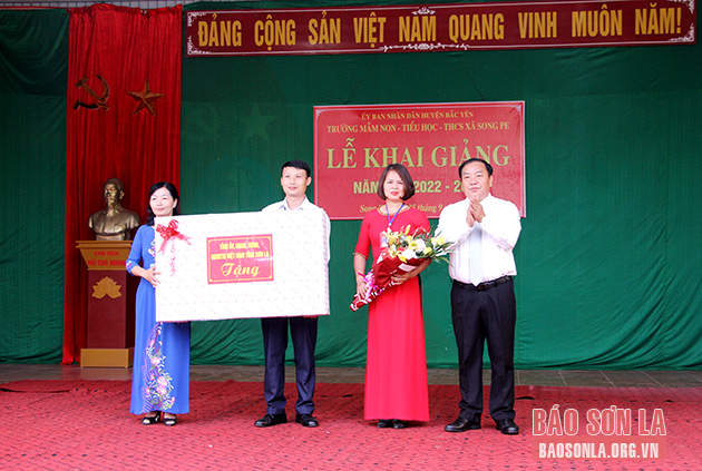 Đồng chí Chá A Của, Phó Chủ tịch HĐND tỉnh cùng các đồng chí lãnh đạo huyện Bắc Yên đã dự Lễ khai giảng năm học mới 2022-2023 tại Trường THCS xã Song Pe.