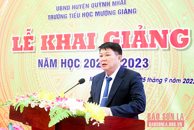 Đồng chí Lò Minh Hùng, Phó Bí thư Thường trực Tỉnh ủy phát biểu tại Lễ khai giảng.