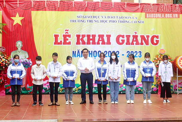 Nhân dịp này, UBND xã Cò Nòi và Trung tâm Viễn thông Mai Sơn đã trao tặng 25 suất quà cho học sinh nghèo, hoàn cảnh khó khăn của Trường THPT Cò Nòi.