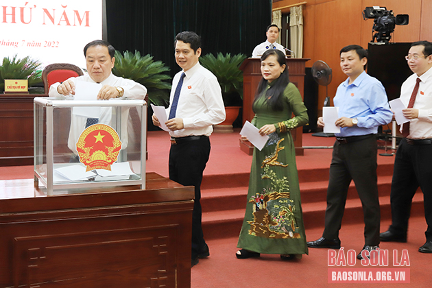 Đại biểu HĐND tỉnh bỏ phiếu bầu bổ sung Ủy viên UBND tỉnh khóa XV.
