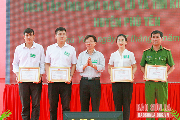Nhân dịp này, UBND tỉnh đã tặng Bằng khen cho 2 tập thể và 7 cá nhân; UBND huyện Phù Yên khen thưởng 5 tập thể và cá nhân có thành tích tham gia cuộc diễn tập.