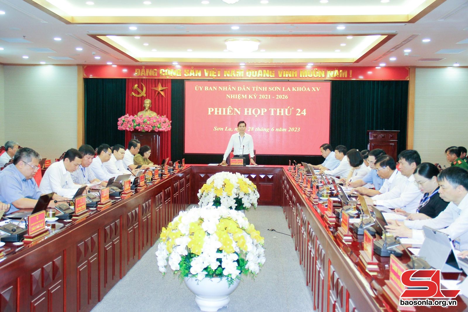 Phát biểu tại phiên họp, đồng chí Chủ tịch UBND tỉnh yêu cầu các sở, ban, ngành, UBND các huyện, thành phố nghiêm túc đánh giá, phân tích các nguyên nhân của hạn chế, tồn tại để có các giải pháp hiệu quả. Tập trung thực hiện các kết luận, chỉ đạo của Ban Chấp hành Đảng bộ, Ban Thường vụ Tỉnh ủy về các nhiệm vụ sơ kết giữa nhiệm kỳ thực hiện Nghị quyết đại hội Đảng bộ tỉnh lần thứ XV, nhiệm kỳ 2020-2025. Quyết liệt hơn nữa trong quản lý, điều hành và tổ chức triển khai thực hiện đồng bộ, hiệu quả các giải pháp tháo gỡ và đẩy mạnh giải ngân vốn đầu tư công, phát triển sản xuất bền vững, đẩy mạnh thu hút đầu tư để thúc đẩy tăng trưởng. Đẩy mạnh phát triển sản xuất, kinh doanh, nâng cao năng suất, hiệu quả và sức cạnh tranh của các ngành, lĩnh vực, sản phẩm. Phát triển kinh tế đi đôi với bảo đảm an sinh xã hội, phúc lợi xã hội, phát triển toàn diện các lĩnh vực văn hóa - xã hội. Quản lý và sử dụng hiệu quả tài nguyên; tăng cường bảo vệ môi trường và ứng phó với biến đổi khí hậu. Đẩy mạnh công tác phòng, chống tham nhũng, thực hành tiết kiệm, chống lãng phí.