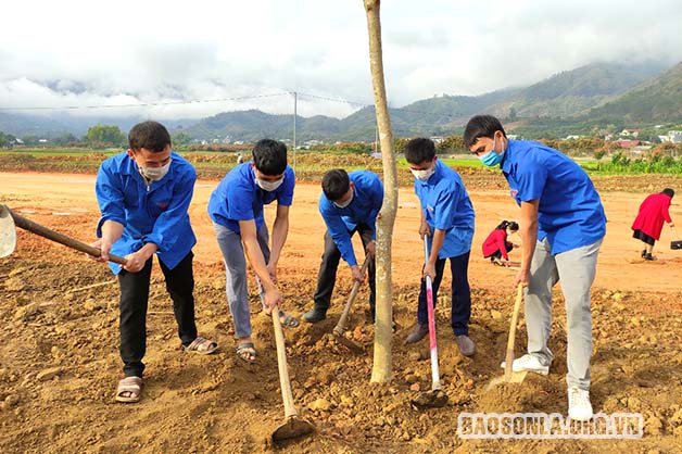 Lực lượng Đoàn viên thanh niên tham gia trồng cây xanh.