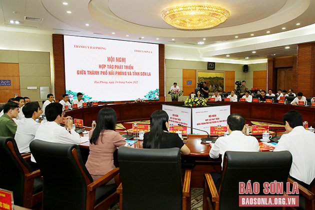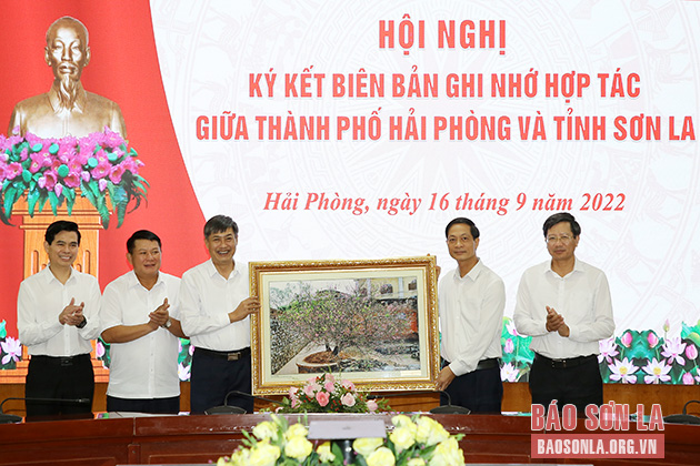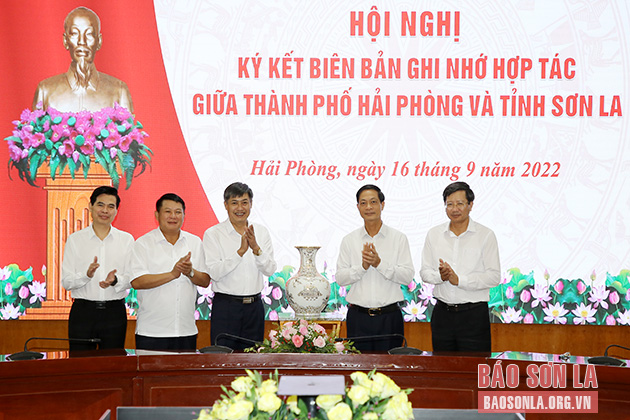 Nhân dịp này, thành phố Hải Phòng và tỉnh Sơn La đã ký kết biên bản ghi nhớ về hợp tác toàn diện giai đoạn 2022 – 2025. Với các nội dung hợp tác về công tác xây dựng Đảng và củng cố hệ thống chính trị; đào tạo, bồi dưỡng, phát triển nguồn nhân lực; phát triển, sản xuất, chế biến, tiêu thụ sản phẩm nông sản; thu hút đầu tư xây dựng kết cấu hạ tầng; xây dựng chính quyền số, kinh tế số, xã hội số; hỗ trợ khởi nghiệp đổi mới sáng tạo; hợp tác về du lịch, phát triển văn hóa, xã hội, các chương trình an sinh xã hội, nâng cao đời sống nhân dân trên địa bàn; đảm bảo quốc phòng, an ninh, đối ngoại.