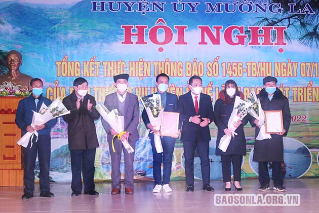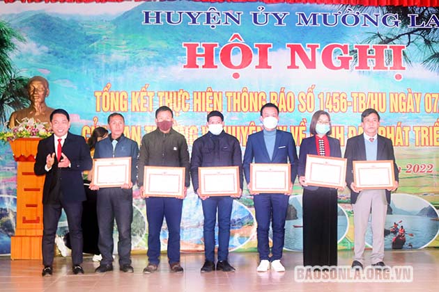 Huyện ủy Mường La tặng Giấy khen cho các tập thể.