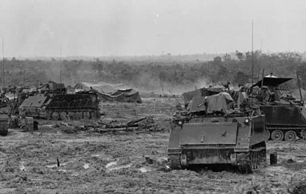Xe bọc thép của địch bị phá hủy khi tiến công đánh phá chốt chặn Tàu Ô trên Đường 13. Ảnh tư liệu