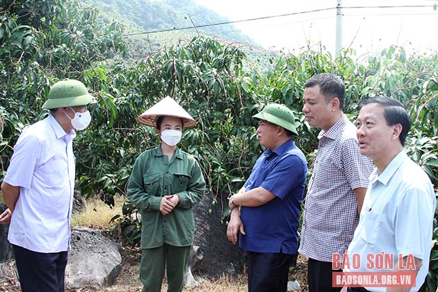 Đồng chí Bí thư Tỉnh ủy khảo sát tại HTX Thiên Tân, bản Nông Xôm, xã Hát Lót, huyện Mai Sơn.