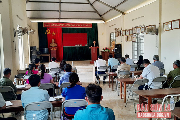 Đồng chí Chủ nhiệm Ủy ban Kiểm tra Tỉnh ủy dự sinh hoạt Chi bộ bản Pom Khốc, xã Chiềng Tương, huyện Yên Châu.