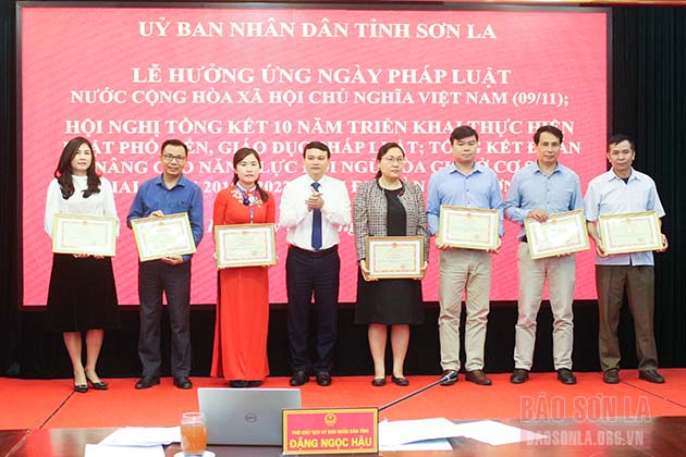 Nhân dịp này, UBND tỉnh tặng Bằng khen 19 tập thể, 19 cá nhân có thành tích trong công tác tuyên truyền PBGDPL và hòa giải cơ sở.