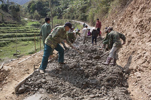 Hội viên Hội CCB xã Mường Khoa, huyện Bắc Yên tham gia làm đường giao thông nông thôn.