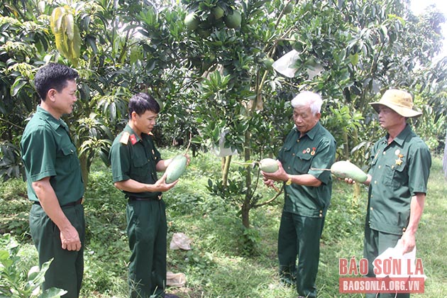 Hội viên CCB xã Chiềng Ngần, Thành phố trao đổi kinh nghiệm trồng xoài theo tiêu chuẩn VietGAP.