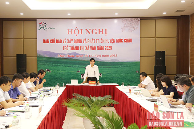 Ngày 30/6, tại huyện Mộc Châu, đồng chí Hoàng Quốc Khánh, Phó Bí thư Tỉnh ủy, Chủ tịch UBND tỉnh đã chủ trì Hội nghị Ban Chỉ đạo về xây dựng và phát triển huyện Mộc Châu trở thành thị xã vào năm 2025 và làm việc với huyện Mộc Châu về công tác chuẩn bị kỳ thi tốt nghiệp THPT năm 2022. Dự Hội nghị có đồng chí Lê Hồng Minh, Phó Chủ tịch UBND tỉnh; lãnh đạo một số sở, ngành và huyện Mộc Châu.