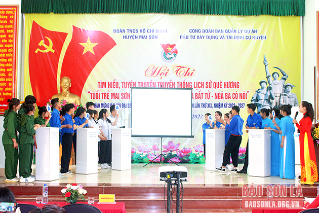 Ngày 17/5, Huyện đoàn Mai Sơn đã phối hợp với Công đoàn Ban quản lý dự án đầu tư xây dựng và tái định cư huyện, chủ đầu tư Dự án Tôn tạo và phát huy giá trị khu di tích lịch sử Ngã ba Cò Nòi tổ chức Hội thi tìm hiểu, tuyên truyền lịch sử quê hương “Tuổi trẻ Mai Sơn ngân vang khúc tráng ca bất tử - Ngã ba Cò Nòi”.