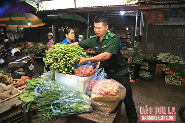 Khác với thường ngày, tại khu vực bếp cơm của Đồn Biên phòng Cửa khẩu Chiềng Khương hôm nay đỏ lửa sớm hơn bởi nơi đây được lựa chọn để tổ chức nấu ăn miễn phí cho các thí sinh. Không khí ở đây rất rộn rã, mỗi người mỗi việc, người vo gạo nấu cơm, người nhặt rau, gọt củ quả, người thái thịt, không ai ngơi tay. Các chị, các cô đứng bếp thì mồ hôi thẫm đẫm. Để có những suất ăn ngon gửi đến các sĩ tử, các nguyên liệu, thức ăn được sơ chế, chế biến rất cẩn thận, sạch sẽ.
