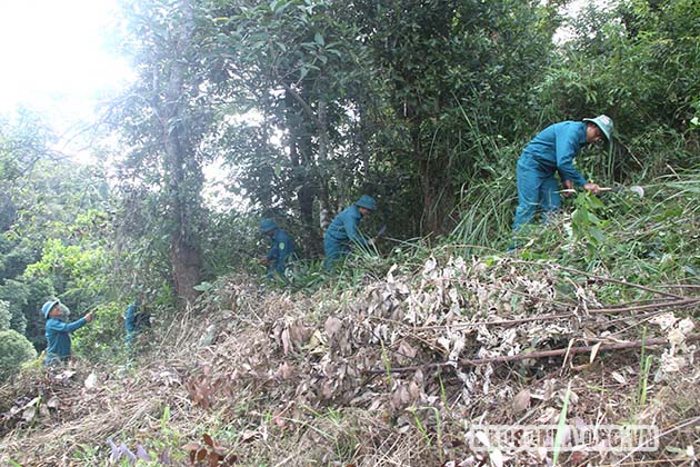 Lực lượng dân quân xã Mường Sang (Mộc Châu) tham gia khoanh nuôi bảo vệ rừng.