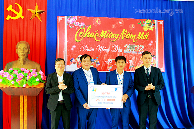 Lãnh đạo Báo Sơn La chia sẻ khó khăn với xã Bó Sinh trong phát triển kinh tế - xã hội, nhất là việc xóa nhà tạm, nhà dột nát trên địa bàn. Nhân dịp này, Báo Sơn La đã phối hợp với Ngân hàng Nông nghiệp và Phát triển nông thôn tỉnh; Công ty VTC Dịch vụ truyền hình số; VNPT Sơn La hỗ trợ xóa 4 nhà tạm; tặng 60 suất quà, 10 đầu thu kỹ thuật số cho hộ nghèo trên địa bàn xã... với tổng trị giá gần 130 triệu đồng.