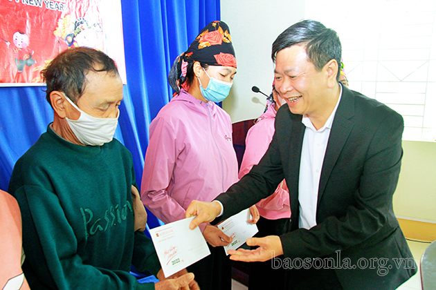 Lãnh đạo Báo Sơn La tặng quà cho các hộ nghèo xã Bó Sinh