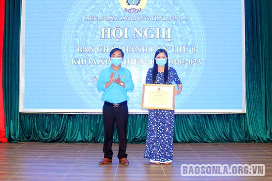 Nhân dịp này, Liên đoàn Lao động tỉnh tổ chức chuyển trao Cờ thi đua cấp trên cơ sở năm 2020 cho Liên đoàn Lao động huyện Vân Hồ, Cờ thi đua phòng trào "Giỏi việc nước đảm việc nhà" cho CĐCS Bệnh viện Y dược cổ truyền tỉnh, Cờ thi đua phong trào "Vệ sinh an toàn lao động" cho CĐCS Công ty cổ phần Môi trường và Dịch vụ đô thị Sơn La, Bằng khen gia đình văn hóa tiêu biểu cho đoàn viên Trần Thị La Giang, CĐCS, Hiệu trưởng Trường THPT Chuyên Sơn La. Liên đoàn Lao động tỉnh biểu dương 10 chủ tịch CĐCS tiêu biểu gắn với Tháng công nhân năm 2021.