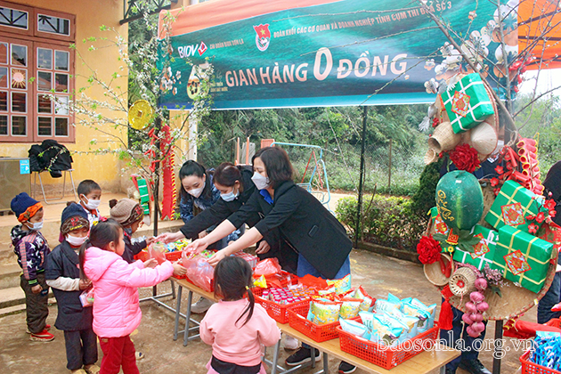 Tổ chức Gian hàng Tết 0 đồng tại Điểm Trường mầm non Hoa Ban, bản Khuông, xã Chiềng On.