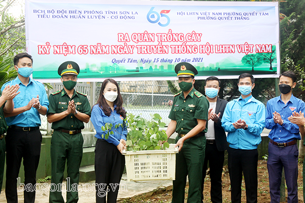 Hưởng ứng Chương trình “Triệu cây xanh – Vì một Việt Nam xanh” do Trung ương Đoàn phát động, ĐVTN 2 phường Quyết Tâm, Quyết Thắng đã trao tặng 100 cây ban (từ công trình “vườn ươm thanh niên”) cho cán bộ, chiến sỹ Đoàn cơ sở Tiểu đoàn Huấn luyện – Cơ động để trồng hai bên tuyến đường chính vào khu nhà chỉ huy của Tiểu đoàn và các đồn biên phòng mới xây dựng trên địa bàn tỉnh. Đồng thời, tổ chức giao lưu bóng đá. tạo điều kiện cho cán bộ, chiến sĩ, đoàn viên thanh niên các đơn vị tăng cường đoàn kết, nâng cao tinh thần thể dục thể thao, rèn luyện sức khoẻ theo gương Bác Hồ vĩ đại.