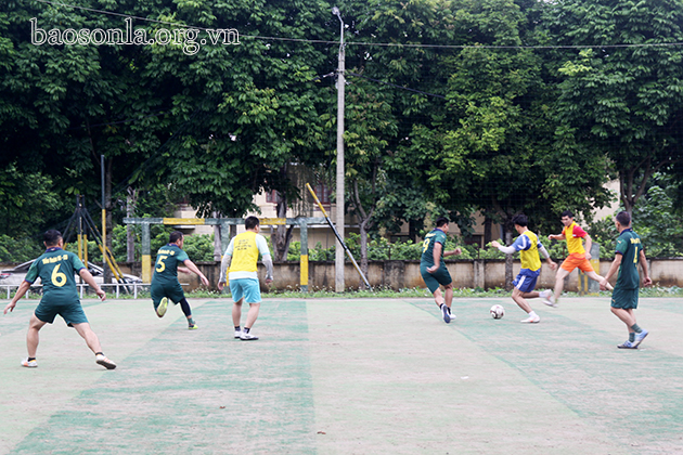Các đoàn viên thanh niên giao lưu bóng đá.