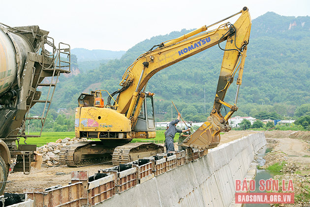 Thi công kè chống sạt lở suối Tấc bảo vệ khu dân cư các xã Huy Thượng, Huy Hạ, huyện Phù Yên.