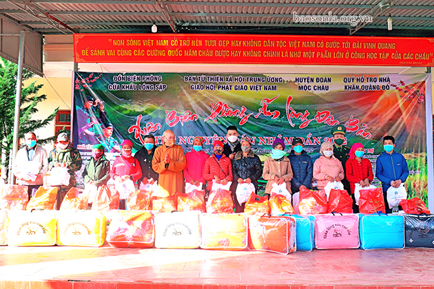 Ngày 22/1, Đồn Biên phòng Cửa khẩu Lóng Sập đã phối hợp với Ban Từ thiện Trung ương Giáo hội Phật giáo Việt Nam, Huyện đoàn Mộc Châu và Quỹ Hỗ trợ nhà Khăn quàng đỏ, tổ chức chương trình “Xuân Biên phòng ấm lòng dân bản” tại xã Chiềng Khừa và Lóng Sập, huyện Mộc Châu.