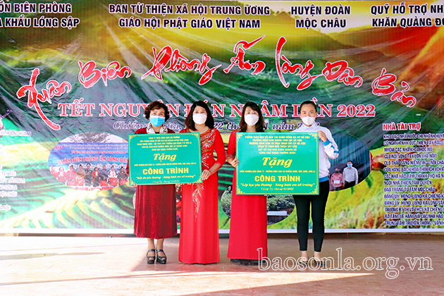 Các đơn vị đã thăm, tặng quà và chúc tết 30 hộ gia đình chính sách, 672 hộ gia đình có hoàn cảnh đặc biệt khó khăn của 2 xã; bàn giao và đưa vào sử dụng công trình “Lớp học biên cương”, “Bếp ăn yêu thương”; các công trình phụ trợ khác cho học sinh điểm trường mầm non Căng Tỵ (thuộc Trường mầm non xã Chiềng Khừa). Khám bệnh, cấp phát thuốc miễn phí cho 400 người dân tại xã Chiềng Khừa. Ra mắt mô hình “Ươm mầm xanh biên giới - Vững bước tương lai” do Đồn Biên phòng phối hợp với Quỹ Khai trí (thuộc Tập đoàn Apec) thực hiện; tặng quà 5 học sinh được Đồn Biên phòng Cửa khẩu Lóng Sập đỡ đầu trong mô hình “Nâng bước em tới trường và Con nuôi biên phòng”. Tổng kinh phí thực hiện Chương trình trên 650 triệu đồng, từ nguồn tài trợ của hơn 30 đơn vị, tổ chức, cá nhân trên địa bàn tỉnh và Hà Nội.
