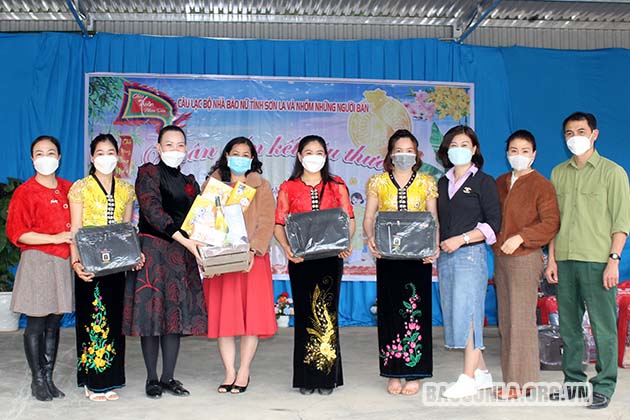 Lãnh đạo Báo Sơn La, Câu lạc bộ Nhà báo nữ tỉnh và Nhóm những người bạn tặng quà cho Đồn Biên phòng Chiềng Sơn.