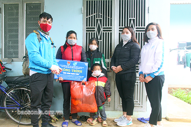 Đoàn tình nguyện tặng công trình "Ánh sáng hạnh phúc" cho hội viên phụ nữ nghèo bản Muông, xã Chiềng Cọ, Thành phố.