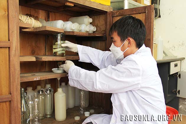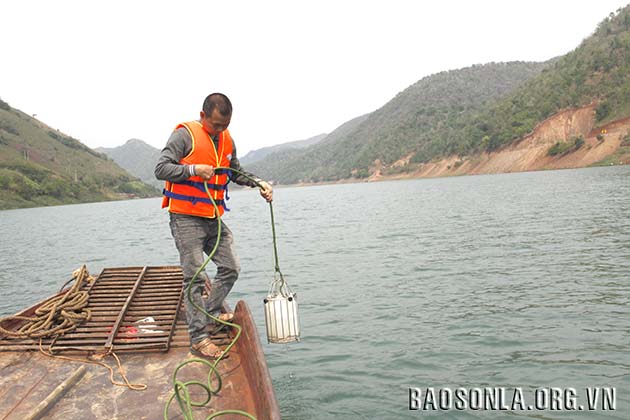 Đang dở câu chuyện, tiếng chuông hẹn giờ vang lên. Anh Sơn và anh Tưởng vội vàng chuẩn bị các dụng cụ cần thiết cho “Obs” quan trắc lúc 16 giờ. Anh Tưởng vừa làm, vừa kể: Trung bình mỗi ngày, chúng tôi phải thực hiện quan trắc thủy văn, với tần suất quan trắc mực nước 4-12 lần/ngày; nhiệt độ nước 2 lần/ngày; quan trắc mưa 4 lần/ngày. Số liệu quan trắc chuyển ngay sau khi quan trắc 15 phút; báo cáo, tài liệu được tính toán, biên tập và gửi về Đài trước ngày mùng 5 hằng tháng. Về môi trường nước hồ, đúng 7h sáng ngày 15 hằng tháng, Trạm thực hiện lấy mẫu, đo các thông số tại hiện trường, lọc, xử lý và gửi mẫu nước theo quy định. Việc thực hiện lấy mẫu theo 3 tầng, gồm tầng mặt, tầng giữa và tầng đáy. Thông thường, thời gian tiến hành quan trắc, lấy mẫu khoảng 2-2,5 tiếng. Trong vòng 2 giờ sau đó, phải hoàn tất khâu xử lý mẫu tại trạm, sau đó, ra ngoài trung tâm huyện cách trạm 30 km gửi ngay mẫu về Trung tâm Quan trắc Khí tượng Thủy văn để phân tích các thông số môi trường nước hồ.