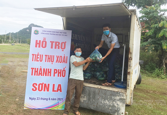 Trường đã hỗ trợ thu hái, đóng gói vận chuyển, kết nối tiêu thụ; hỗ trợ nông dân làm quen với các phương thức giới thiệu, quảng bá, bán hàng trực tuyến phù hợp với bối cảnh dịch bệnh cho HTX Nông sản an toàn Nà Ngần, xã Chiềng Ngần (Thành Phố). Qua các kênh tiêu thụ, trong 1 ngày Công đoàn Trường Đại học Tây Bắc đã hỗ trợ, kết nối và tiêu thụ trên 2 tấn xoài, giúp nông dân giảm bớt khó khăn do dịch bệnh COVID-19.