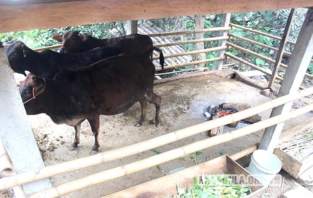 Chuồng nuôi gia súc ở một hộ dân xã Mường Khoa, huyện Bắc Yên chưa được quây kín trong đợt rét vừa qua.