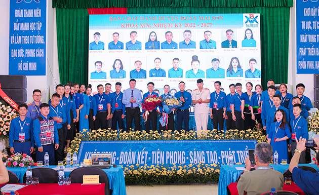 Lãnh đạo Tỉnh đoàn và huyện Mai Sơn chúc mừng BCH Huyện đoàn Mai Sơn khóa XIX, nhiệm kỳ 2022-2025.