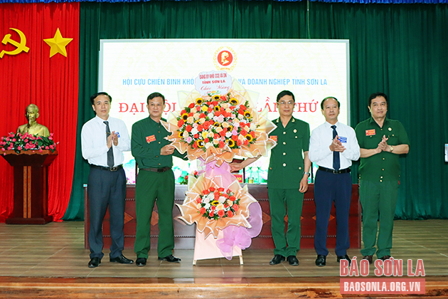 Lãnh đạo Đảng ủy Khối và Hội CCB tỉnh tặng hoa chúc mừng Ban Chấp hành khóa V và Đoàn đại biểu đi dự đại hội cấp trên