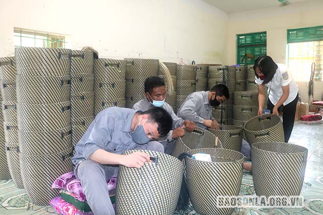 Các học viên tham gia đan rọ nhựa tại Cơ sở Điều trị nghiện ma túy tỉnh.
