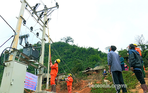 Đóng điện trạm biến áp bản Sa Lai, xã Tân Xuân, huyện Vân Hồ.