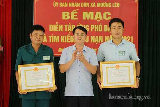 Nhân dịp này, UBND huyện Sốp Cộp đã tặng Giấy khen 2 tập thể, 7 cá nhân có thành tích trong cuộc diễn tập.