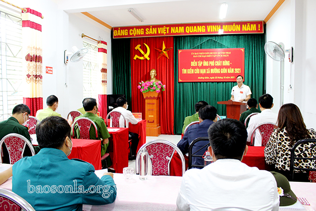 Ngày 22/10, Ban Chỉ đạo diễn tập ứng phó cháy rừng - tìm kiếm cứu nạn huyện Quỳnh Nhai đã tổ chức diễn tập ứng phó cháy rừng - tìm kiếm cứu nạn tại xã Mường Giôn. Cuộc diễn tập được tổ chức trực tuyến tới 10 xã trên địa bàn huyện.