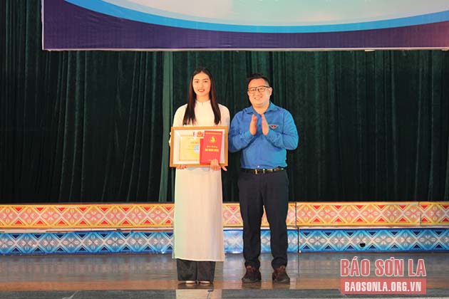 Chuyển trao Giải thưởng “Sao Tháng Giêng” cấp Trung ương năm 2021 cho sinh viên Dương Thị Thu Uyên.