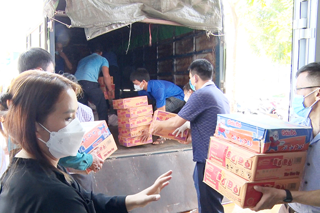 Vận chuyển lương thực, thực phẩm ủng hộ nhân dân huyện Phù Yên.