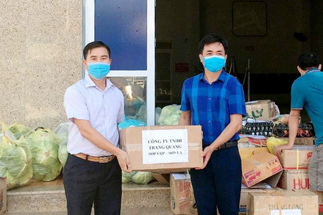 Ủy ban MTTQ Việt Nam huyện Sốp Cộp đã kêu gọi các cơ quan, đơn vị, doanh nghiệp và người dân trên địa bàn huyện quyên góp 19 tấn gạo, 814 kiện mỳ tôm, gần 7,5 tấn rau, củ, quả và nhiều loại nhu yếu phẩm khác... tổng trị giá khoảng 450 triệu đồng. Toàn bộ số lương thực, thực phẩm sau khi phân loại, đóng gói được chuyển đến huyện Phù Yên để phân phối cho nhân dân vùng dịch.