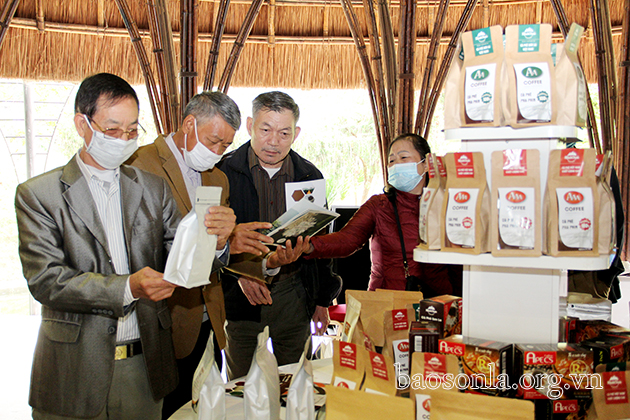 Các đại biểu tham quan gian hàng trưng bày sản phẩm cà phê Sơn La.