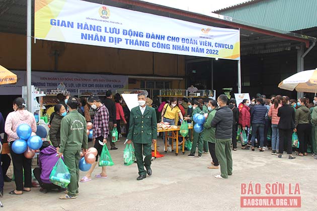 Chào mừng Tháng công nhân năm 2022, trong 2 ngày (21 và 22/4), Liên đoàn Lao động tỉnh phối hợp với Bưu điện tỉnh tổ chức “Gian hàng lưu động dành cho công nhân lao động” tại Công ty cổ phần chè Chiềng Ve, Công ty cổ phần chè Cờ Đỏ và Nhà Văn hóa huyện Mộc Châu.